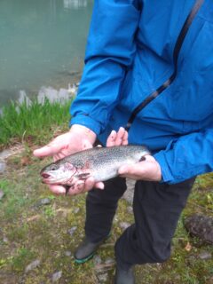 午前9時ごろ魚の放流があり、そこから皆さん連続ヒット。午前中は10匹程度釣れました。